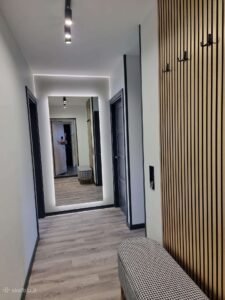 - Didelė sieninė spinta miegamajame su led apšvietimu;